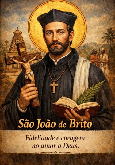 São João de Brito enfrentou perseguições, incompreensões e grandes sofrimentos, mas jamais negou sua fé. Sua vida nos ensina que seguir a Cristo exige renúncia, firmeza e confiança absoluta em Deus, mesmo quando o caminho é difícil. Ele nos mostra que a verdadeira coragem nasce da intimidade com o Senhor e da certeza de que vale a pena permanecer fiel até o fim.